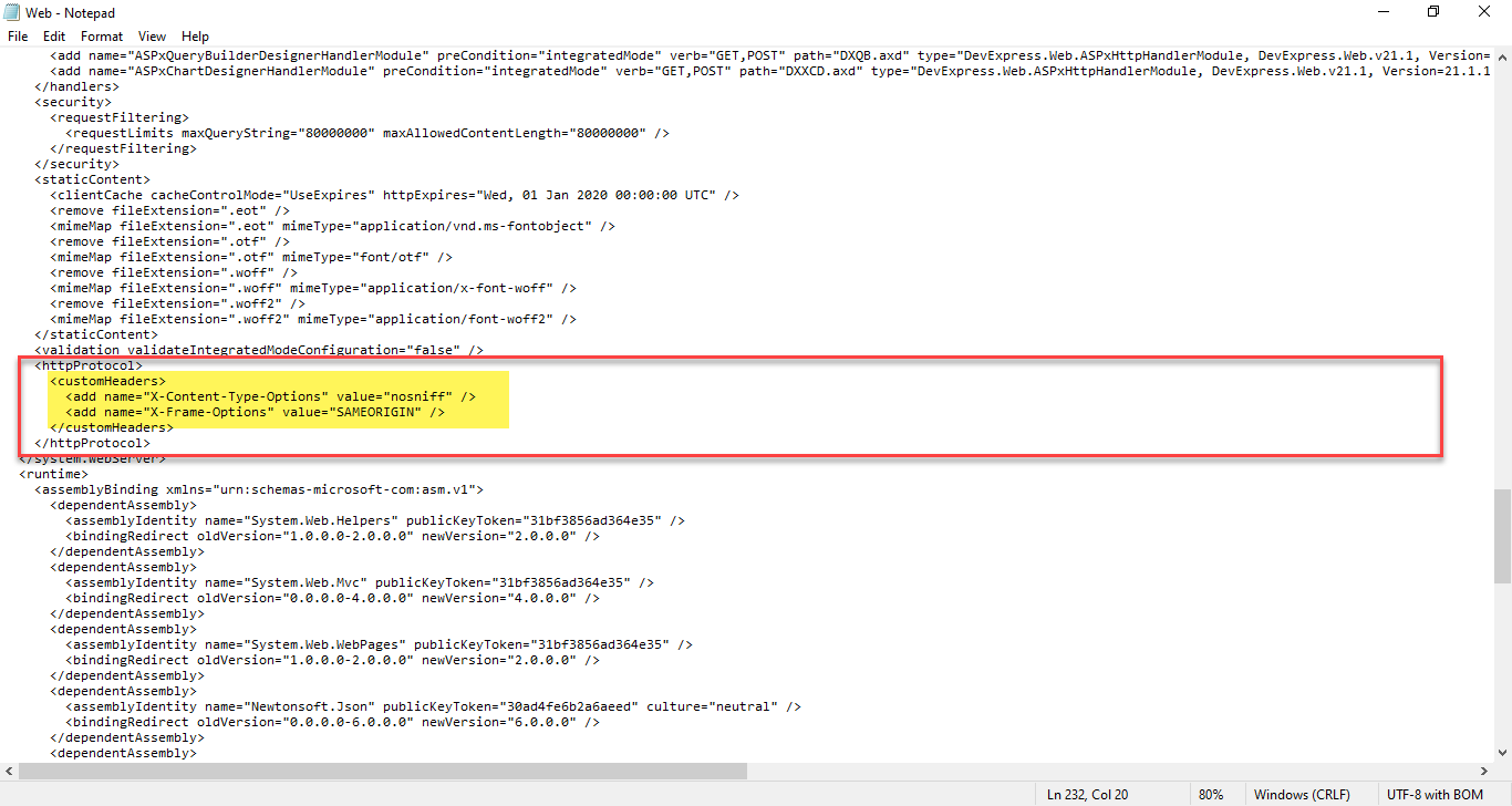 3.2. Replace the code part inside customHeaders tag under httpProtocol tag.