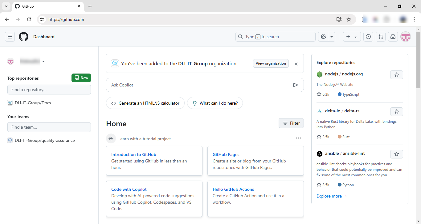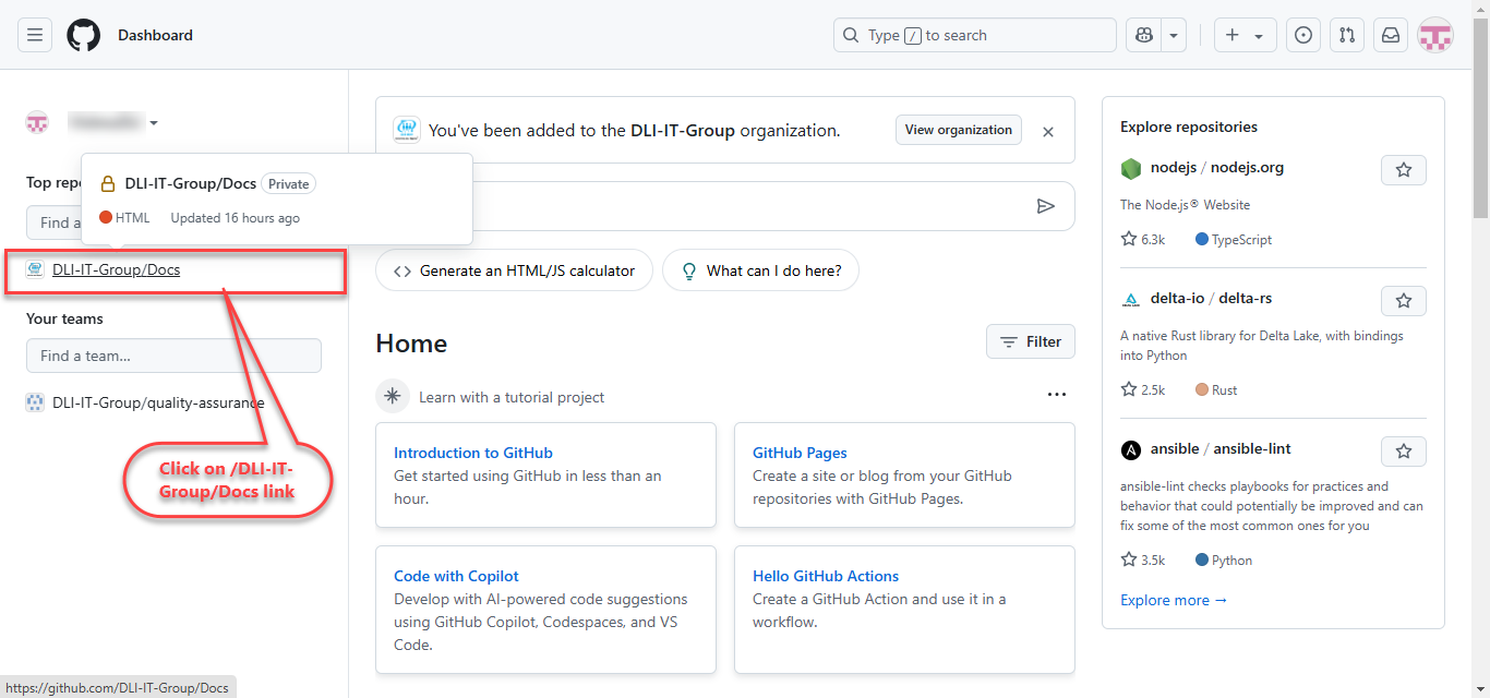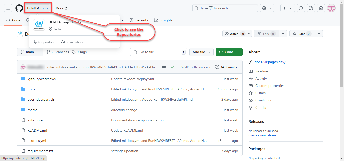 3. Upon clicking which, you will reached on the contents section. Then click the on the title DLI-IT-Group. So the page will open which displays all the repositories under DLI-IT-Group.