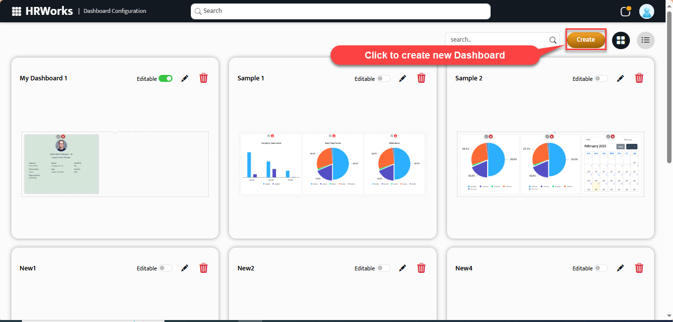 4. Click on the Create button, the Create New Dashboard page will open up.